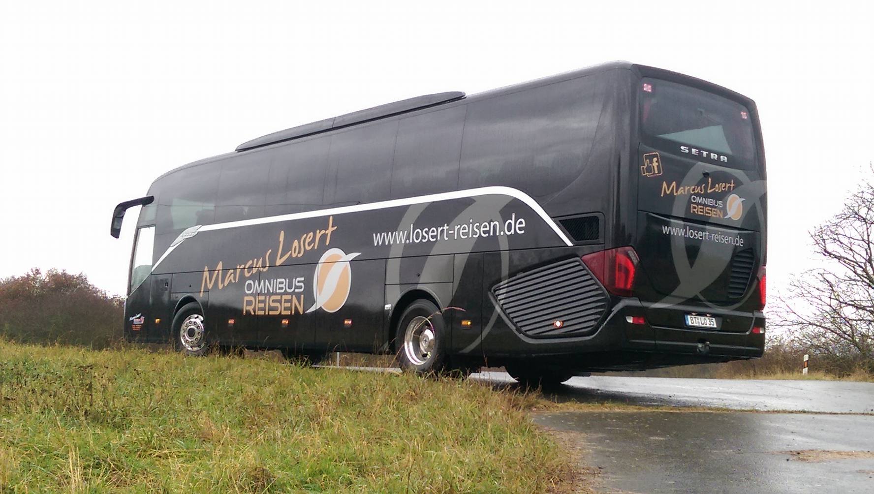 Unser Setra S515 HD hat vergangene Woche das Firmenlogo in den Farben Gold und Silber bekommen. Wir bedanken uns bei der Firma 2 MEN GROUP GMBH für das Design und für die Beklebung.